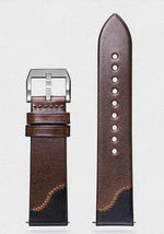 Das Leder hat schicke Nähte und eine glatte, geschmeidige Oberfläche. Die Nähte sind farblich auf das Hauptleder abgestimmt. Der Uhrenarmband besteht aus zwei verschiedenen Farben, wobei die Nähte in Form "S" die Zeit als einen fliessenden Fluss symbolisieren. Mit einer eleganten Edelstahlschliesse ausgestattet, bietet es sicheren Halt und einfaches An- und Ablegen. Das hochwertige Kalbsleder erster Klasse garantiert Langlebigkeit und ein luxuriöses Tragegefühl.