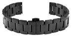 Schwarze Massive Edelstahl-Armbanduhr mit Stiftverbindung. Matt mit polierten Gliedern, die den zentralen Link flankieren, und Doppelfaltschliesse.
