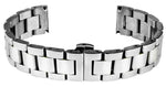 Massives Edelstahl-Metalluhrband mit Stiftverbindung und doppelter Faltschliesse. Das Band ist gebürstet und kommt mit, Schnellverschluss, Push-Pins.