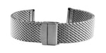 Milanaise-Uhrenarmband aus Edelstahl und mit Sicherheitsschliesse. Dieses Band besteht aus einem 0,6 mm starken Draht.