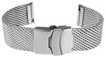 Milanaise-Uhrenarmband aus Edelstahl und mit Sicherheitsschließe. Dieses Band besteht aus einem 0,6 mm starken Draht.