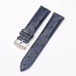 Uhrenarmband aus Kalbsleder mit Straussendruck mit schwarzer Farbe. Dieses Uhrenarmband ist gepolstert und mit einer Edelstahlschliesse ausgestattet.